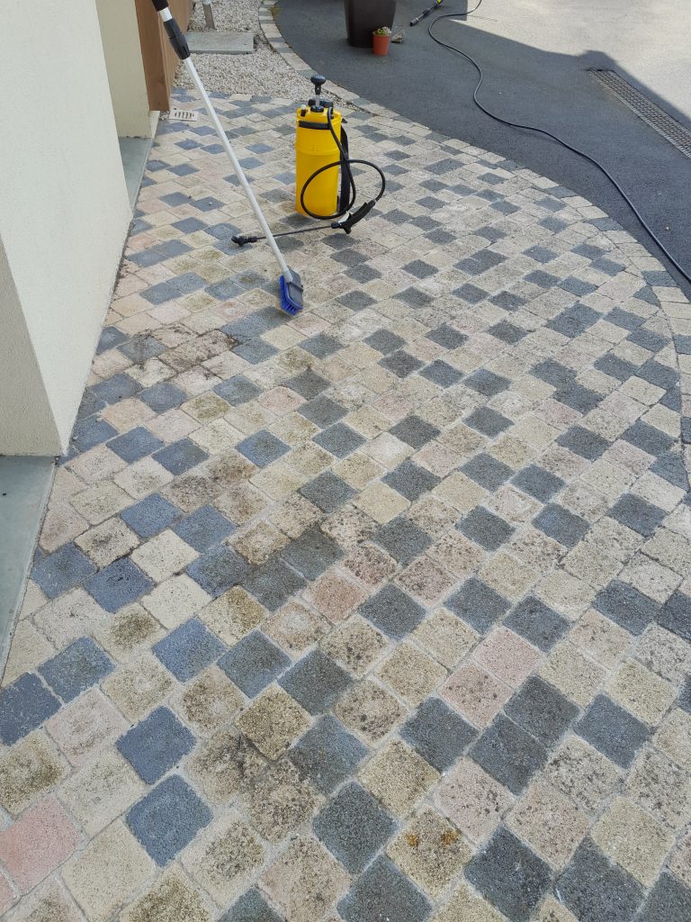 J’utilise un produit anti-mousse et naturel pour réaliser le démoussage de votre terrasse.